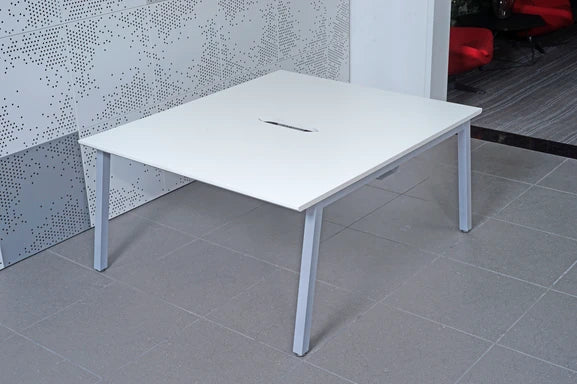 25mm chamfered edge • Modern scalloped cable tidy • Metal 'A' frame end & shared legs • metal to metal fixings