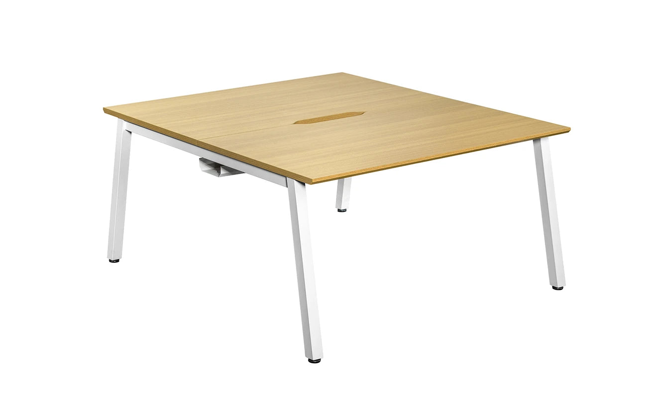 1600x800mm Back to Back Starter Bench Desk Light Oak Top White Legs