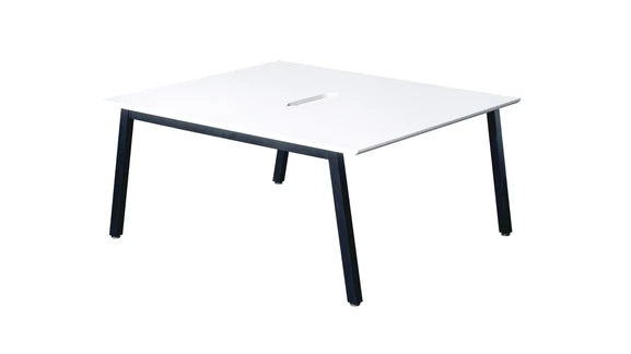25mm chamfered edge • Modern scalloped cable tidy • Metal 'A' frame end & shared legs • metal to metal fixings