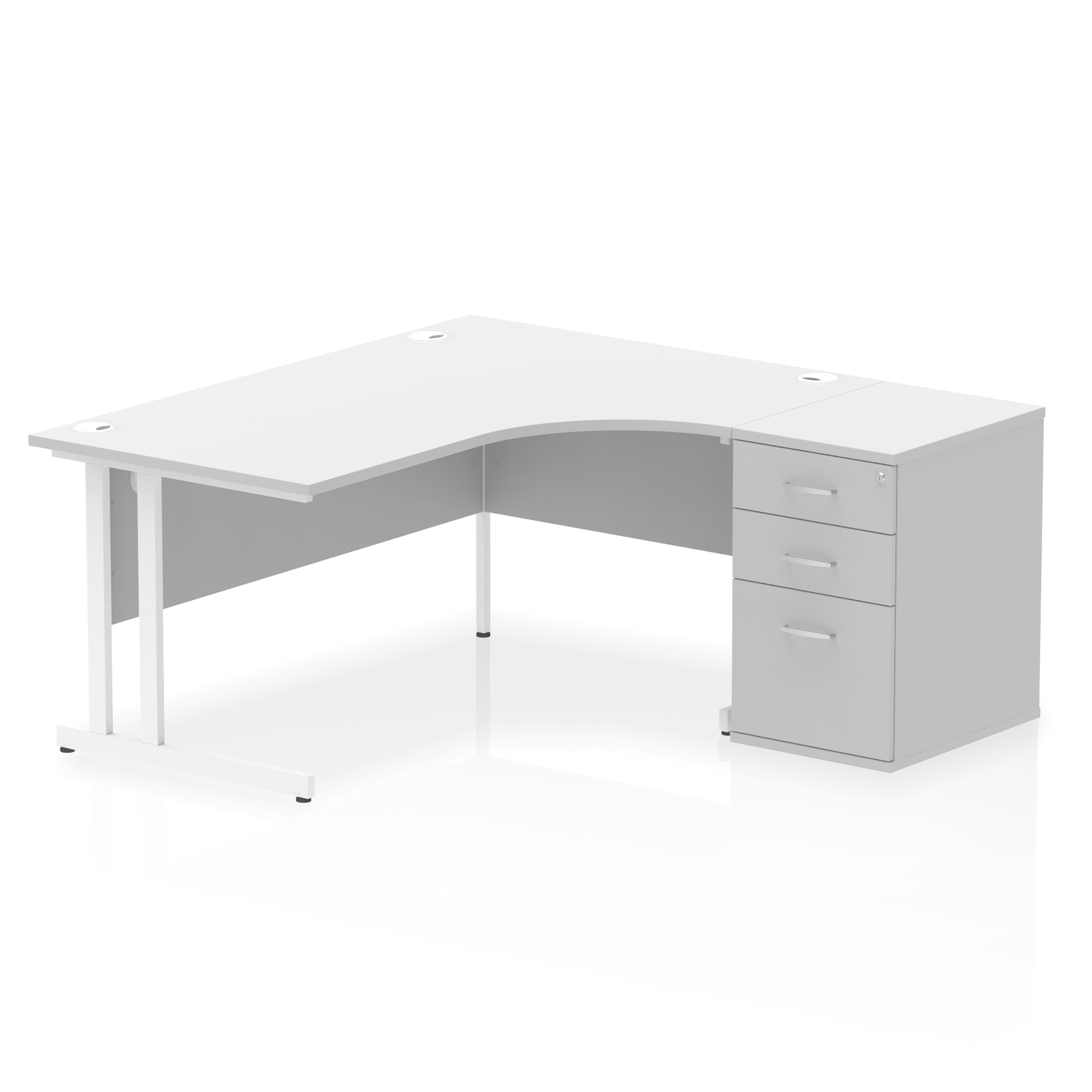 Impulse 1600mm Right Hand Curved Desk, White Top with White Cantilver Legs inc 3 Drawer Desk High Pedestal