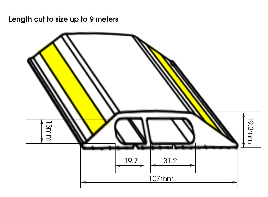 At just 13 mm (0.5″) in height, the low-profile design minimizes obstruction while yellow high-visibility bands enhance awareness and safety, making it ideal for both commercial and residential settings. -