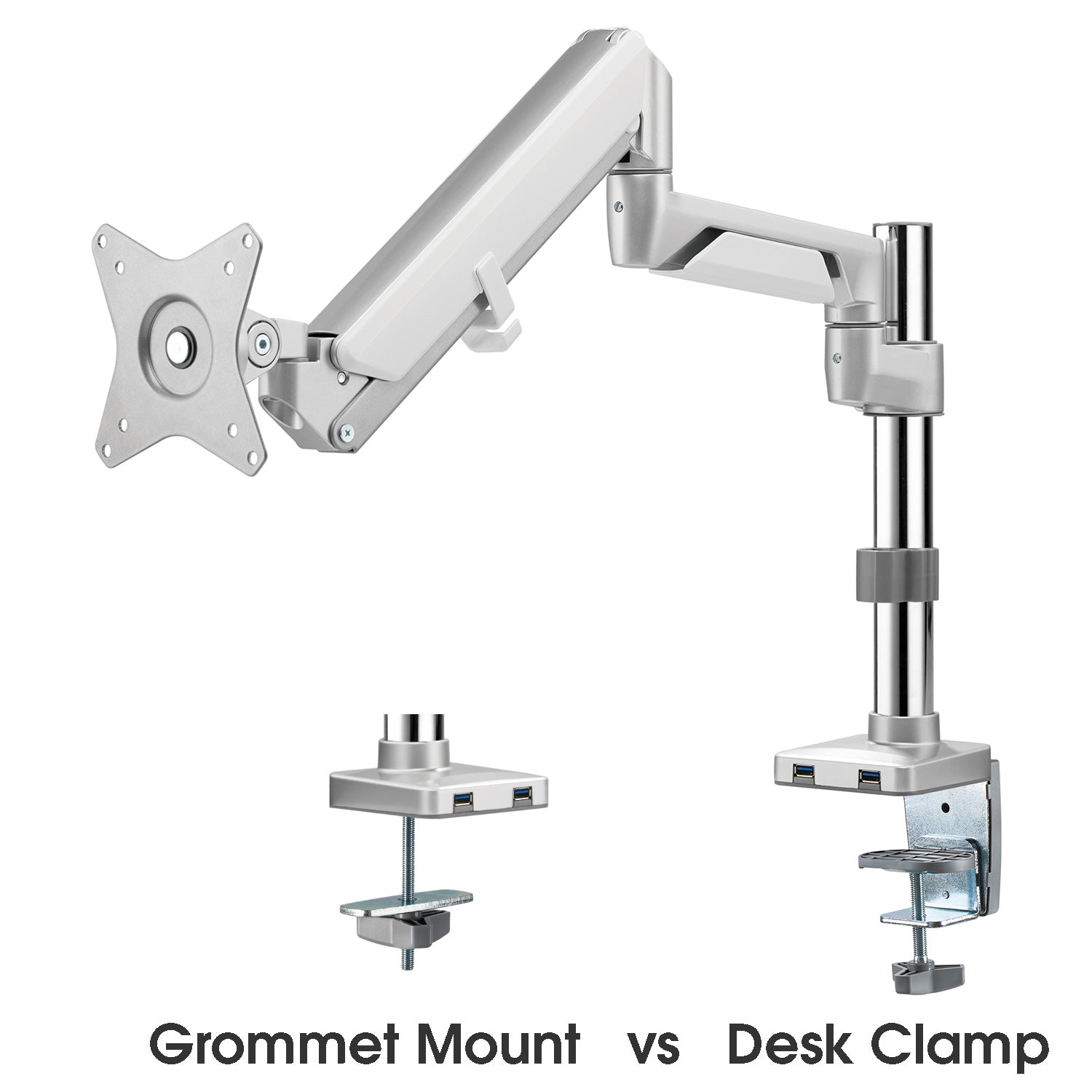 Novara Plus Gas Spring Single Monitor Arm with USB Port Silver